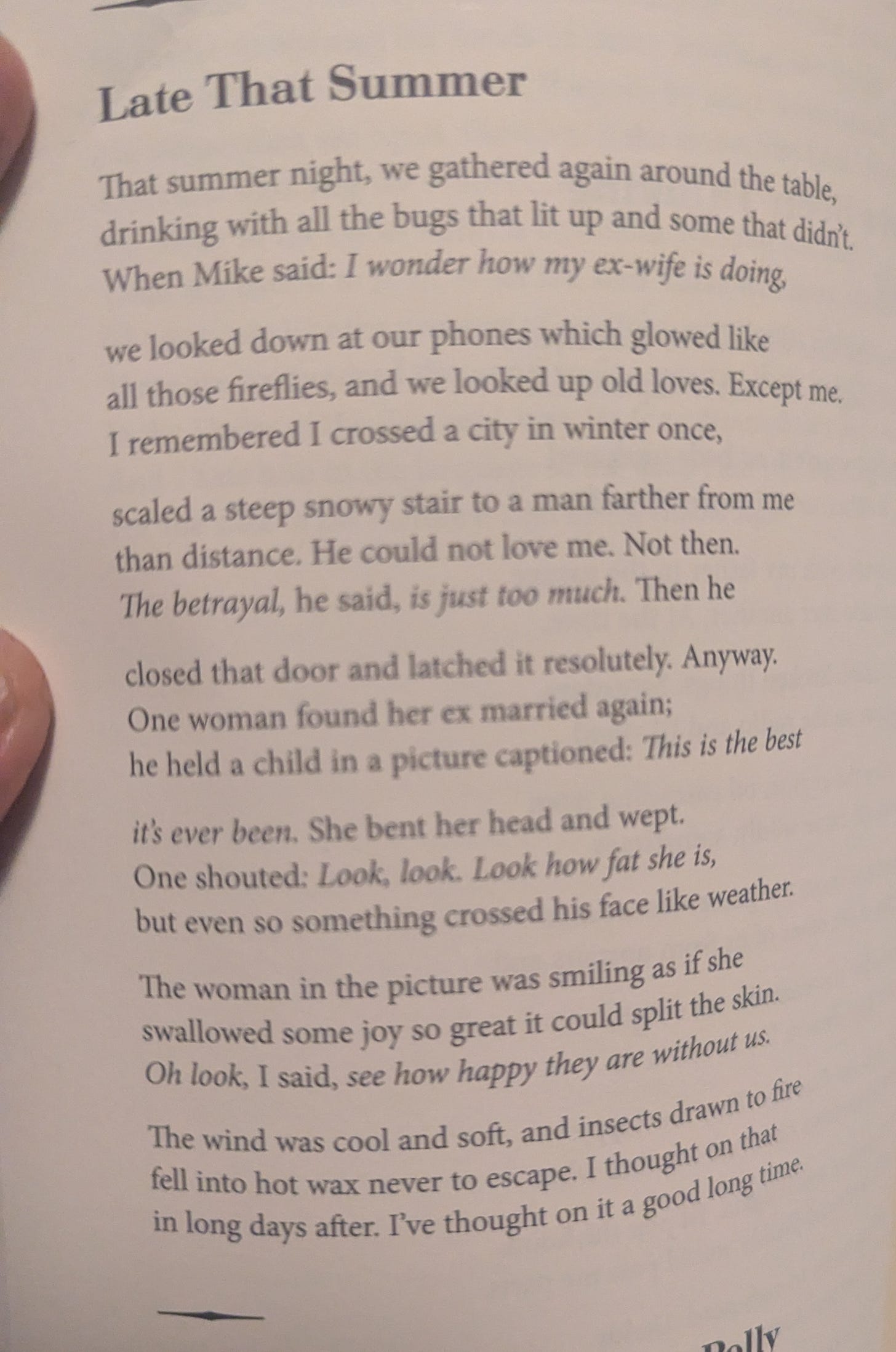 I had two poems to share from a beautiful book HARDLINES Rough South Poetry, given to me by my dear friend Chelsea Maier. I was eager to share some southern women poems, but sadly our lineup was too packed to squeeze them. I will share them here. The last one is intense, a particular punch in the guts