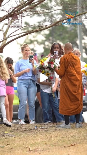 As you watch the monks walk, you will often see them carrying flowers. Sometimes people sprinkle petals on the ground in front of them in their gratitude. A beautiful sentiment went up around this on their post recently.
